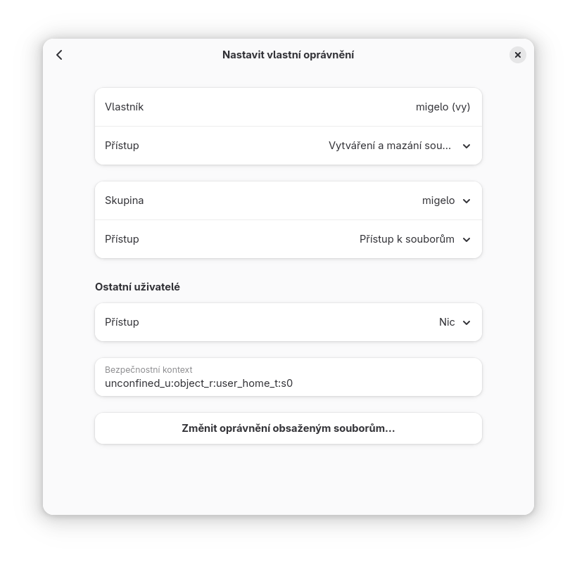 Správci souborů „GTK prostředí“, používají trochu jiné názvosloví, ale jak vidíte, je to to samé. Ukázka je z prostředí GNOME a správce souborů Soubory (Files)